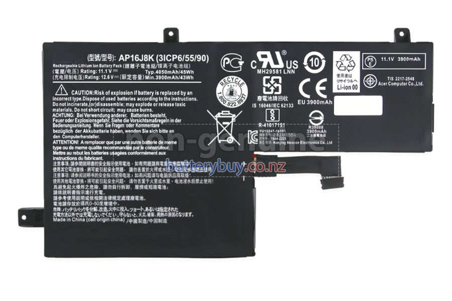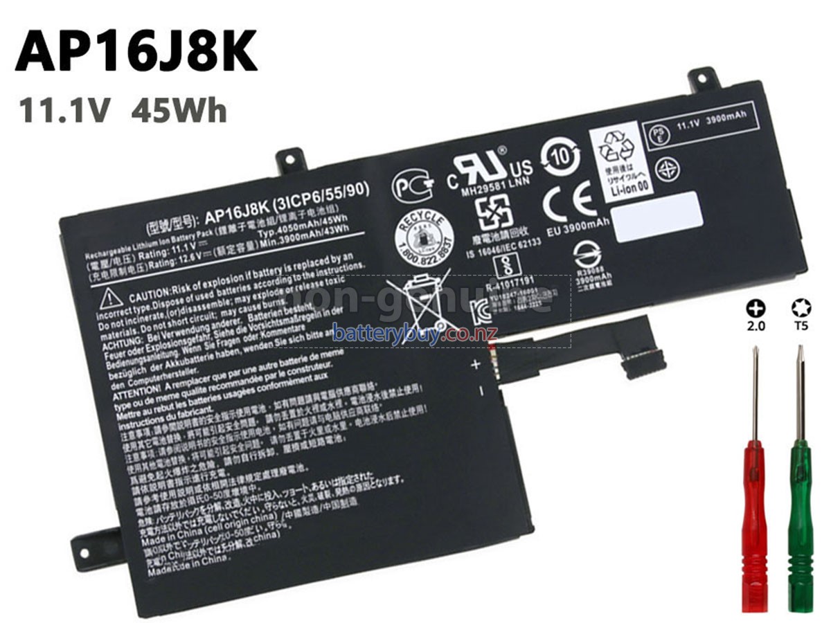 Welcome to BatteryBuy.co.nz buy the replacement laptop battery for Acer AP16J8K(3ICP6/55/90)! We specialize in providing high-quality laptop batteries. All of our laptop batteries have been rigorously tested for reliability and safety to ensure high-quality and standards. The specifications of the replacement laptop battery for Acer AP16J8K(3ICP6/55/90) is the same as the original battery and 100% compatible with your Acer laptop. The Acer AP16J8K(3ICP6/55/90) laptop battery replacement use Li-Ion battery technology to replace the aging system battery or as a backup battery. All Acer laptop batteries are manufactured with high-quality components that give each battery the highest quality. All of our replacement laptop batteries are Long-lasting life and Longer standby time.