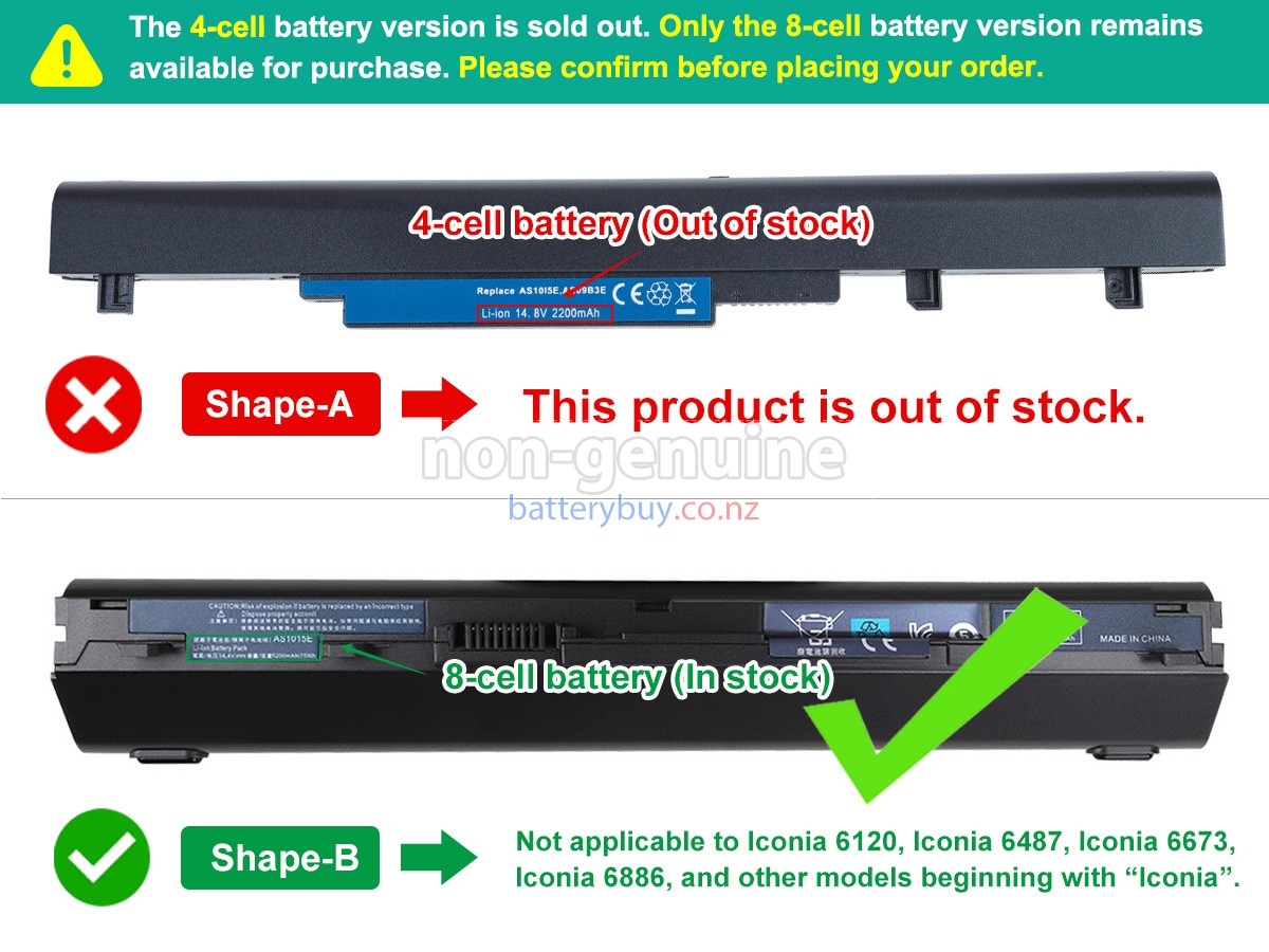 Welcome to BatteryBuy.co.nz buy the replacement laptop battery for Acer AS09B5E! We specialize in providing high-quality laptop batteries. All of our laptop batteries have been rigorously tested for reliability and safety to ensure high-quality and standards. The specifications of the replacement laptop battery for Acer AS09B5E is the same as the original battery and 100% compatible with your Acer laptop. The Acer AS09B5E laptop battery replacement use Li-Ion battery technology to replace the aging system battery or as a backup battery. All Acer laptop batteries are manufactured with high-quality components that give each battery the highest quality. All of our replacement laptop batteries are Long-lasting life and Longer standby time.