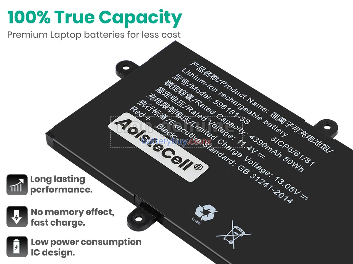 Welcome to BatteryBuy.co.nz buy the replacement laptop battery for AolsteCell 596181-3S! We specialize in providing high-quality laptop batteries. All of our laptop batteries have been rigorously tested for reliability and safety to ensure high-quality and standards. The specifications of the replacement laptop battery for AolsteCell 596181-3S is the same as the original battery and 100% compatible with your AolsteCell laptop. The AolsteCell 596181-3S laptop battery replacement use Li-Ion battery technology to replace the aging system battery or as a backup battery. All AolsteCell laptop batteries are manufactured with high-quality components that give each battery the highest quality. All of our replacement laptop batteries are Long-lasting life and Longer standby time.