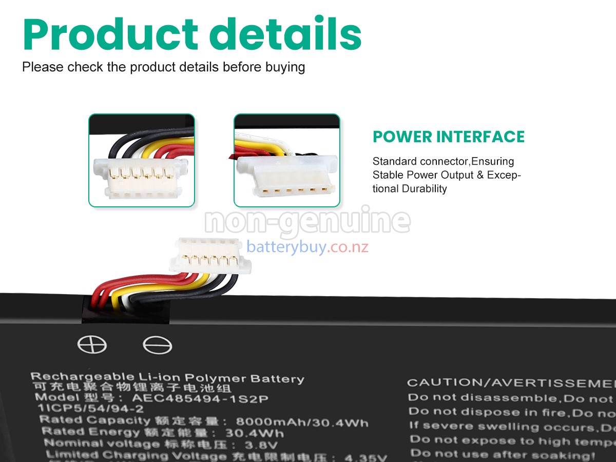 Welcome to BatteryBuy.co.nz buy the replacement laptop battery for AolsteCell AEC485494-1S2P! We specialize in providing high-quality laptop batteries. All of our laptop batteries have been rigorously tested for reliability and safety to ensure high-quality and standards. The specifications of the replacement laptop battery for AolsteCell AEC485494-1S2P is the same as the original battery and 100% compatible with your AolsteCell laptop. The AolsteCell AEC485494-1S2P laptop battery replacement use Li-Ion battery technology to replace the aging system battery or as a backup battery. All AolsteCell laptop batteries are manufactured with high-quality components that give each battery the highest quality. All of our replacement laptop batteries are Long-lasting life and Longer standby time.