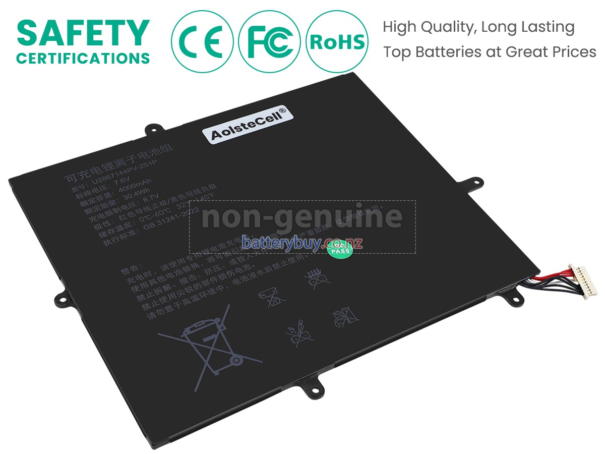 Welcome to BatteryBuy.co.nz buy the replacement laptop battery for AolsteCell U2867144PV-2S1P! We specialize in providing high-quality laptop batteries. All of our laptop batteries have been rigorously tested for reliability and safety to ensure high-quality and standards. The specifications of the replacement laptop battery for AolsteCell U2867144PV-2S1P is the same as the original battery and 100% compatible with your AolsteCell laptop. The AolsteCell U2867144PV-2S1P laptop battery replacement use Li-Ion battery technology to replace the aging system battery or as a backup battery. All AolsteCell laptop batteries are manufactured with high-quality components that give each battery the highest quality. All of our replacement laptop batteries are Long-lasting life and Longer standby time.
