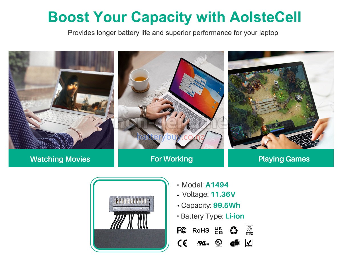 Welcome to BatteryBuy.co.nz buy the replacement laptop battery for Apple MGXG2LL/A! We specialize in providing high-quality laptop batteries. All of our laptop batteries have been rigorously tested for reliability and safety to ensure high-quality and standards. The specifications of the replacement laptop battery for Apple MGXG2LL/A is the same as the original battery and 100% compatible with your Apple laptop. The Apple MGXG2LL/A laptop battery replacement use Li-Ion battery technology to replace the aging system battery or as a backup battery. All Apple laptop batteries are manufactured with high-quality components that give each battery the highest quality. All of our replacement laptop batteries are Long-lasting life and Longer standby time.