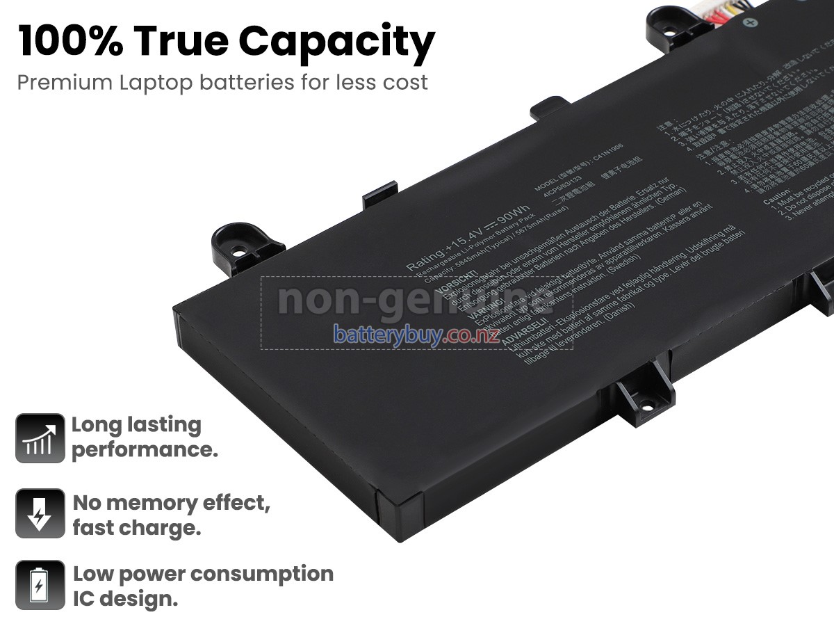Welcome to BatteryBuy.co.nz buy the replacement laptop battery for Asus Rog ZEPHYRUS DUO 15 GX550LWS-HF116T! We specialize in providing high-quality laptop batteries. All of our laptop batteries have been rigorously tested for reliability and safety to ensure high-quality and standards. The specifications of the replacement laptop battery for Asus Rog ZEPHYRUS DUO 15 GX550LWS-HF116T is the same as the original battery and 100% compatible with your Asus laptop. The Asus Rog ZEPHYRUS DUO 15 GX550LWS-HF116T laptop battery replacement use Li-Ion battery technology to replace the aging system battery or as a backup battery. All Asus laptop batteries are manufactured with high-quality components that give each battery the highest quality. All of our replacement laptop batteries are Long-lasting life and Longer standby time.
