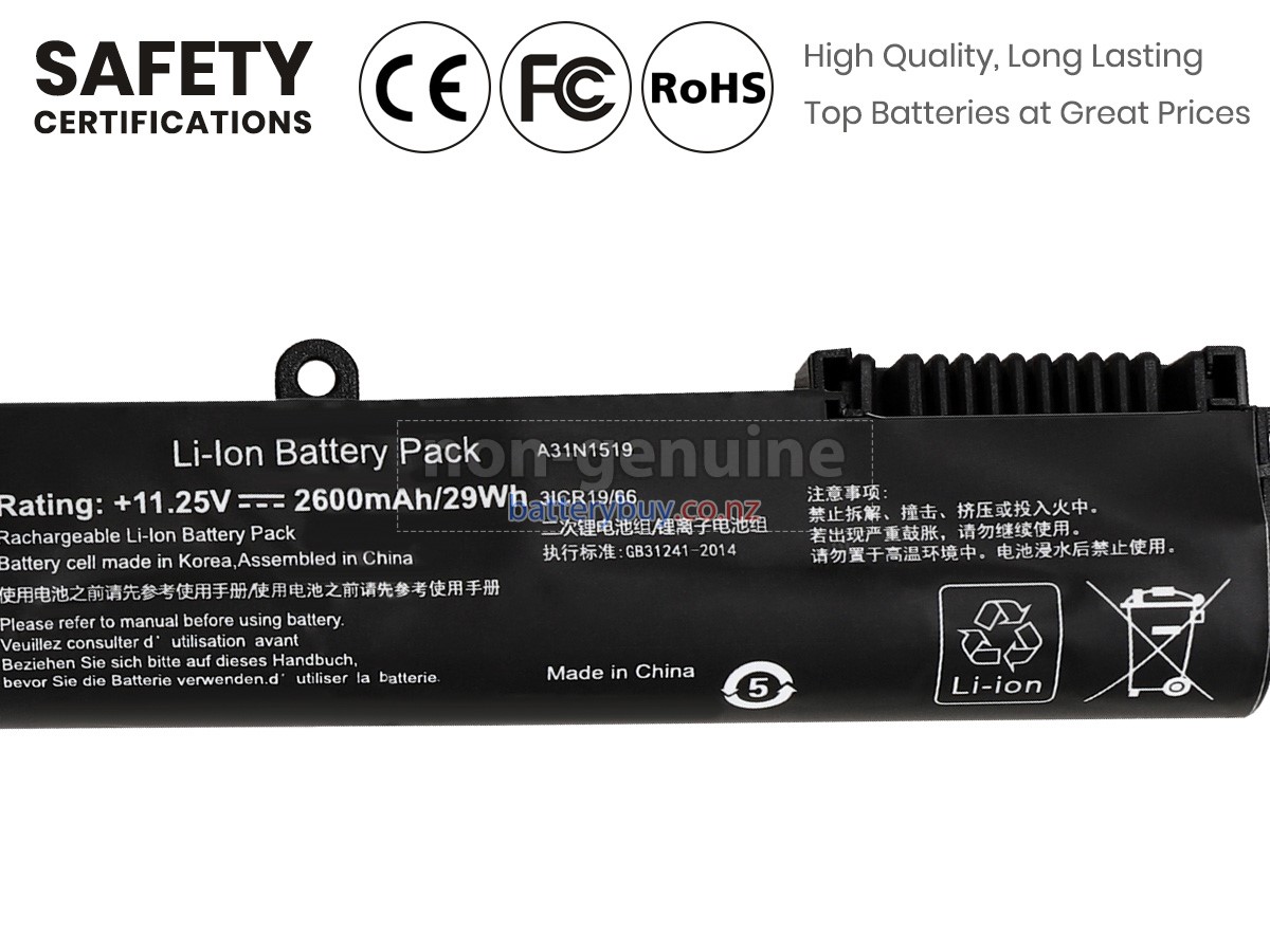 Welcome to BatteryBuy.co.nz buy the replacement laptop battery for Asus VivoBook F540MA! We specialize in providing high-quality laptop batteries. All of our laptop batteries have been rigorously tested for reliability and safety to ensure high-quality and standards. The specifications of the replacement laptop battery for Asus VivoBook F540MA is the same as the original battery and 100% compatible with your Asus laptop. The Asus VivoBook F540MA laptop battery replacement use Li-Ion battery technology to replace the aging system battery or as a backup battery. All Asus laptop batteries are manufactured with high-quality components that give each battery the highest quality. All of our replacement laptop batteries are Long-lasting life and Longer standby time.