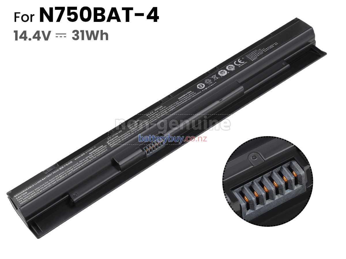 - 2Standard system battery specifications, The Clevo N750BAT-4 laptop battery replacement is 100% compatible with your laptop.