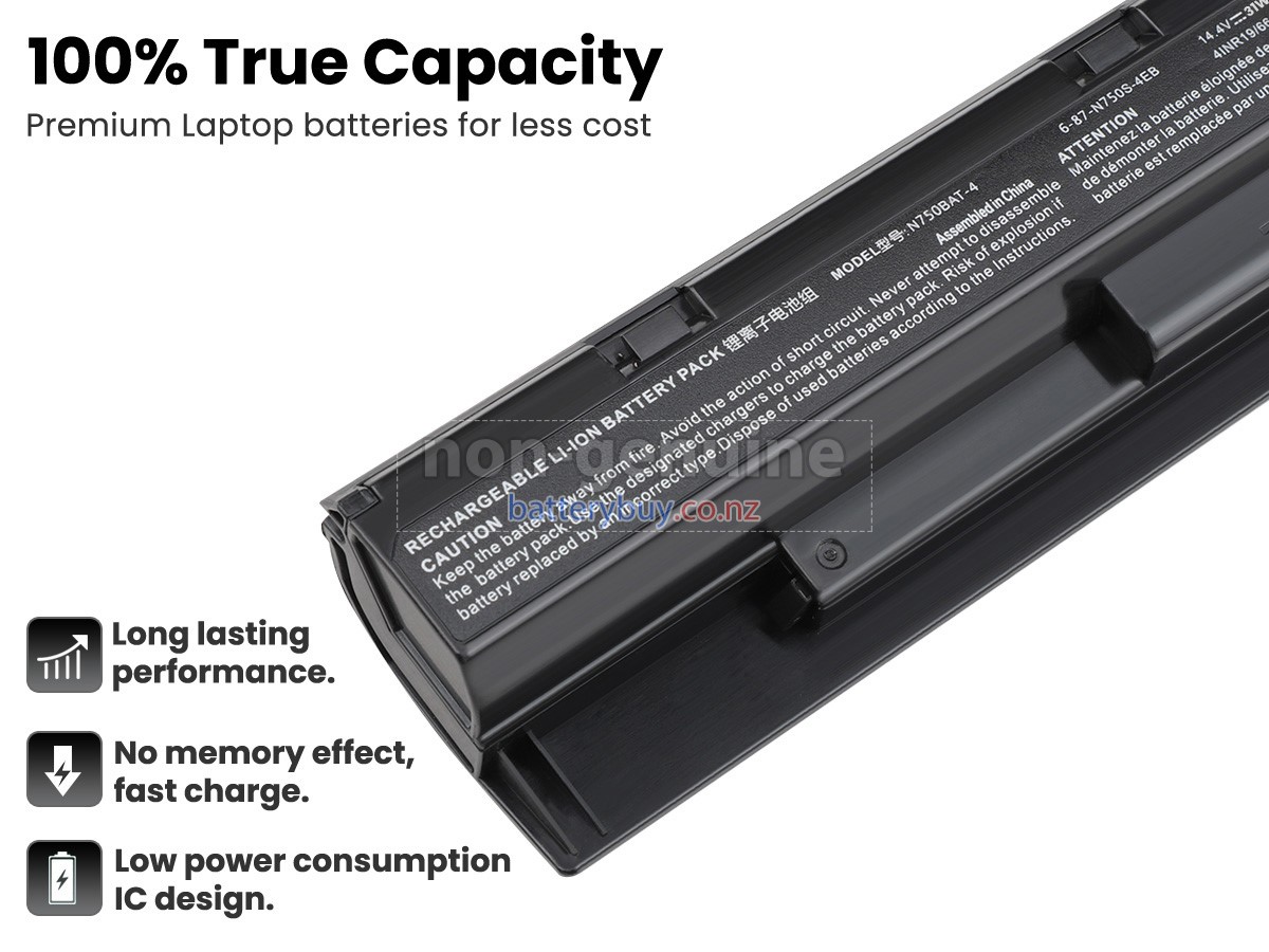 Welcome to BatteryBuy.co.nz buy the replacement laptop battery for Clevo N750BAT-4! We specialize in providing high-quality laptop batteries. All of our laptop batteries have been rigorously tested for reliability and safety to ensure high-quality and standards. The specifications of the replacement laptop battery for Clevo N750BAT-4 is the same as the original battery and 100% compatible with your Clevo laptop. The Clevo N750BAT-4 laptop battery replacement use Li-Ion battery technology to replace the aging system battery or as a backup battery. All Clevo laptop batteries are manufactured with high-quality components that give each battery the highest quality. All of our replacement laptop batteries are Long-lasting life and Longer standby time.
