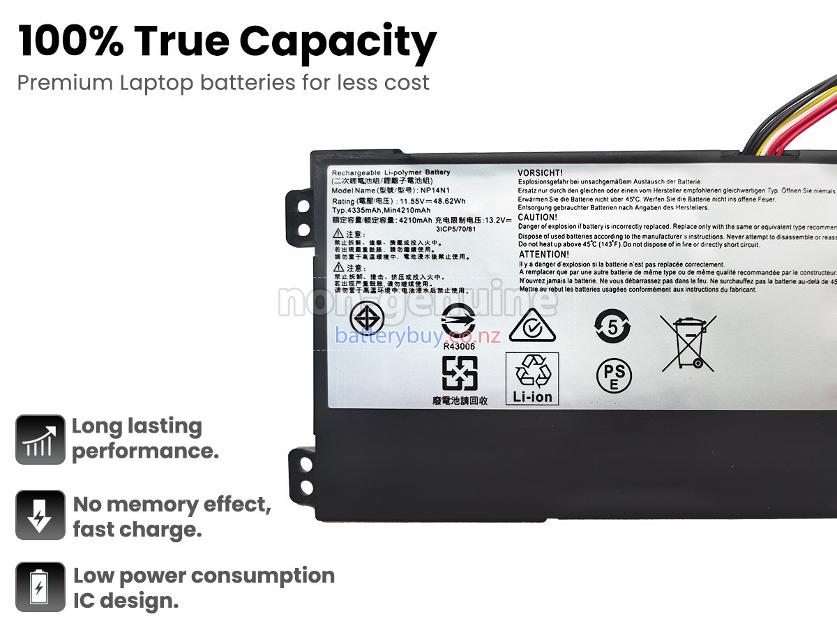 - 2Standard system battery specifications, The Getac NP14N1 laptop battery replacement is 100% compatible with your laptop.