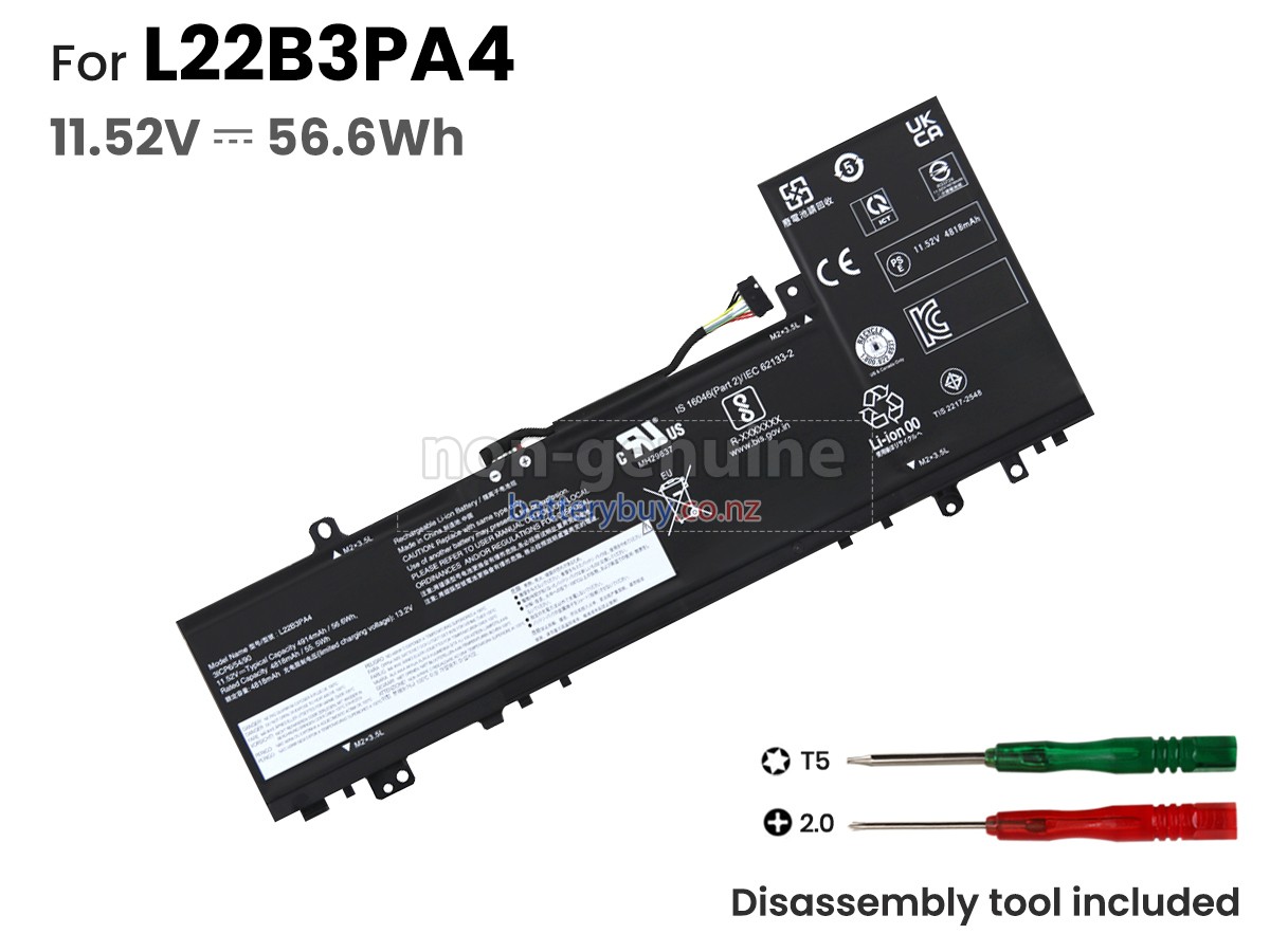 Welcome to BatteryBuy.co.nz buy the replacement laptop battery for Lenovo IdeaPad 5 14IAU8-83BF005FFR! We specialize in providing high-quality laptop batteries. All of our laptop batteries have been rigorously tested for reliability and safety to ensure high-quality and standards. The specifications of the replacement laptop battery for Lenovo IdeaPad 5 14IAU8-83BF005FFR is the same as the original battery and 100% compatible with your Lenovo laptop. The Lenovo IdeaPad 5 14IAU8-83BF005FFR laptop battery replacement use Li-Ion battery technology to replace the aging system battery or as a backup battery. All Lenovo laptop batteries are manufactured with high-quality components that give each battery the highest quality. All of our replacement laptop batteries are Long-lasting life and Longer standby time.