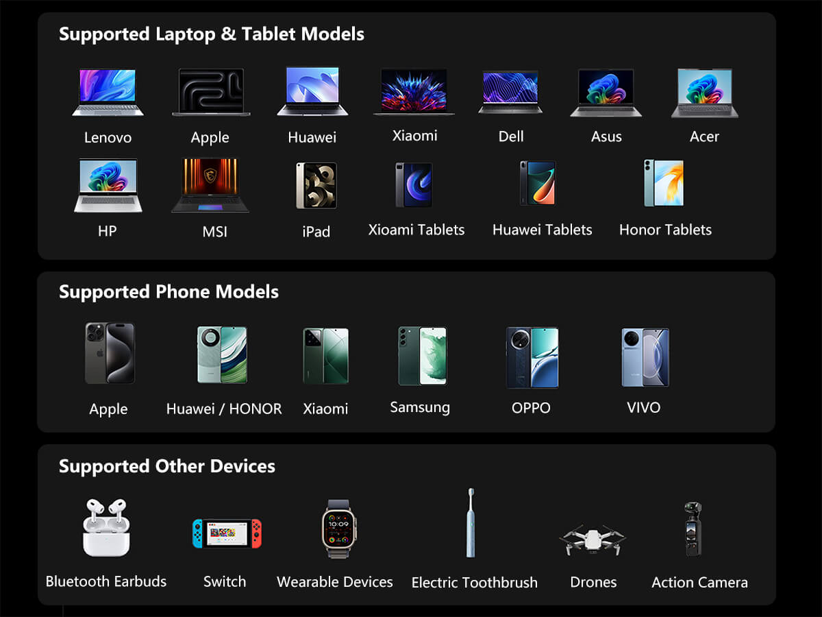 Built for power users, this 20000mAh high-capacity power bank delivers up to 100W fast charging, supporting PD 3.0 and multiple fast-charge protocols. Whether you’re charging a laptop, tablet, or smartphone, you’ll get stable, efficient power when you need it most. In lab tests, it charges a MacBook Air (M3) to 50% or an iPhone 17 Pro to 60% in just 30 minutes, making it ideal for work, travel, and daily use.
