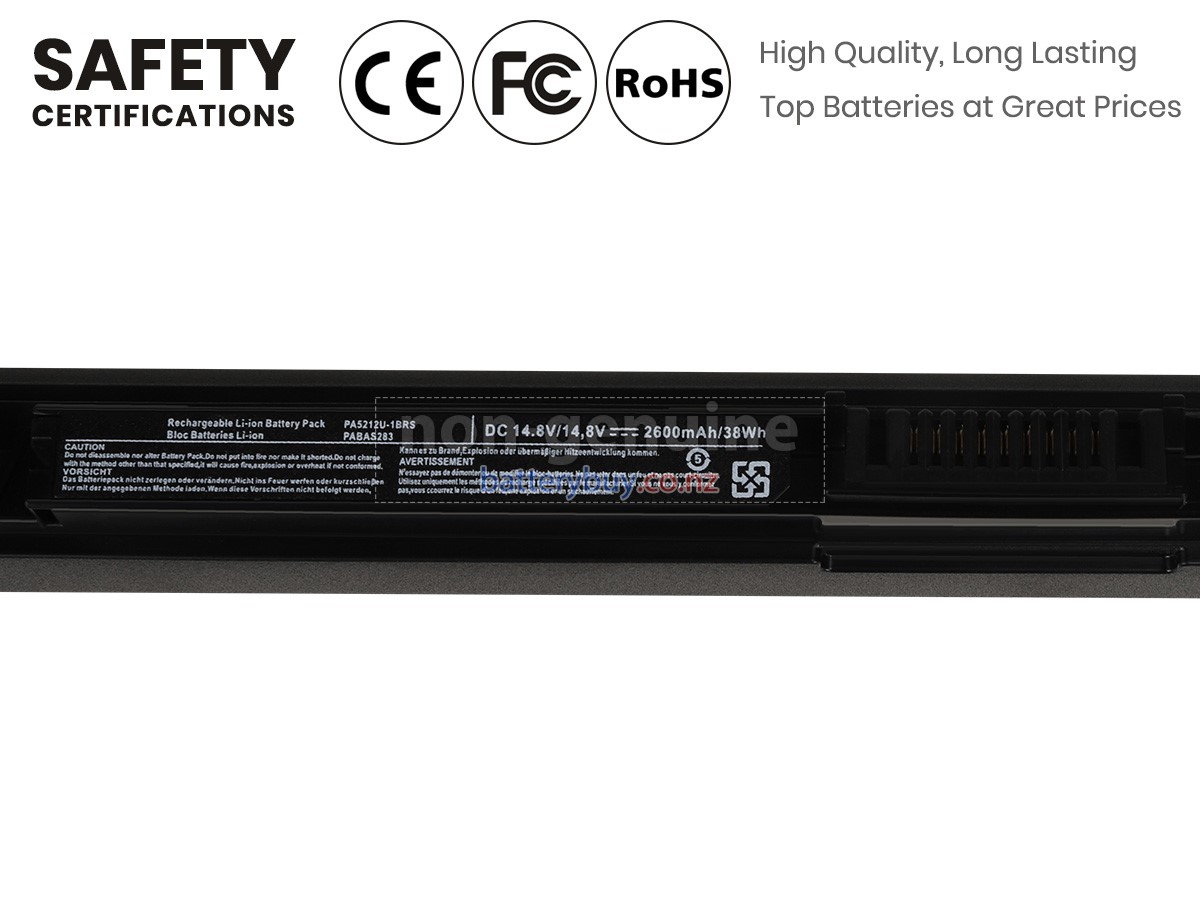Welcome to BatteryBuy.co.nz buy the replacement laptop battery for Toshiba PA5212U-1BRS! We specialize in providing high-quality laptop batteries. All of our laptop batteries have been rigorously tested for reliability and safety to ensure high-quality and standards. The specifications of the replacement laptop battery for Toshiba PA5212U-1BRS is the same as the original battery and 100% compatible with your Toshiba laptop. The Toshiba PA5212U-1BRS laptop battery replacement use Li-Ion battery technology to replace the aging system battery or as a backup battery. All Toshiba laptop batteries are manufactured with high-quality components that give each battery the highest quality. All of our replacement laptop batteries are Long-lasting life and Longer standby time.